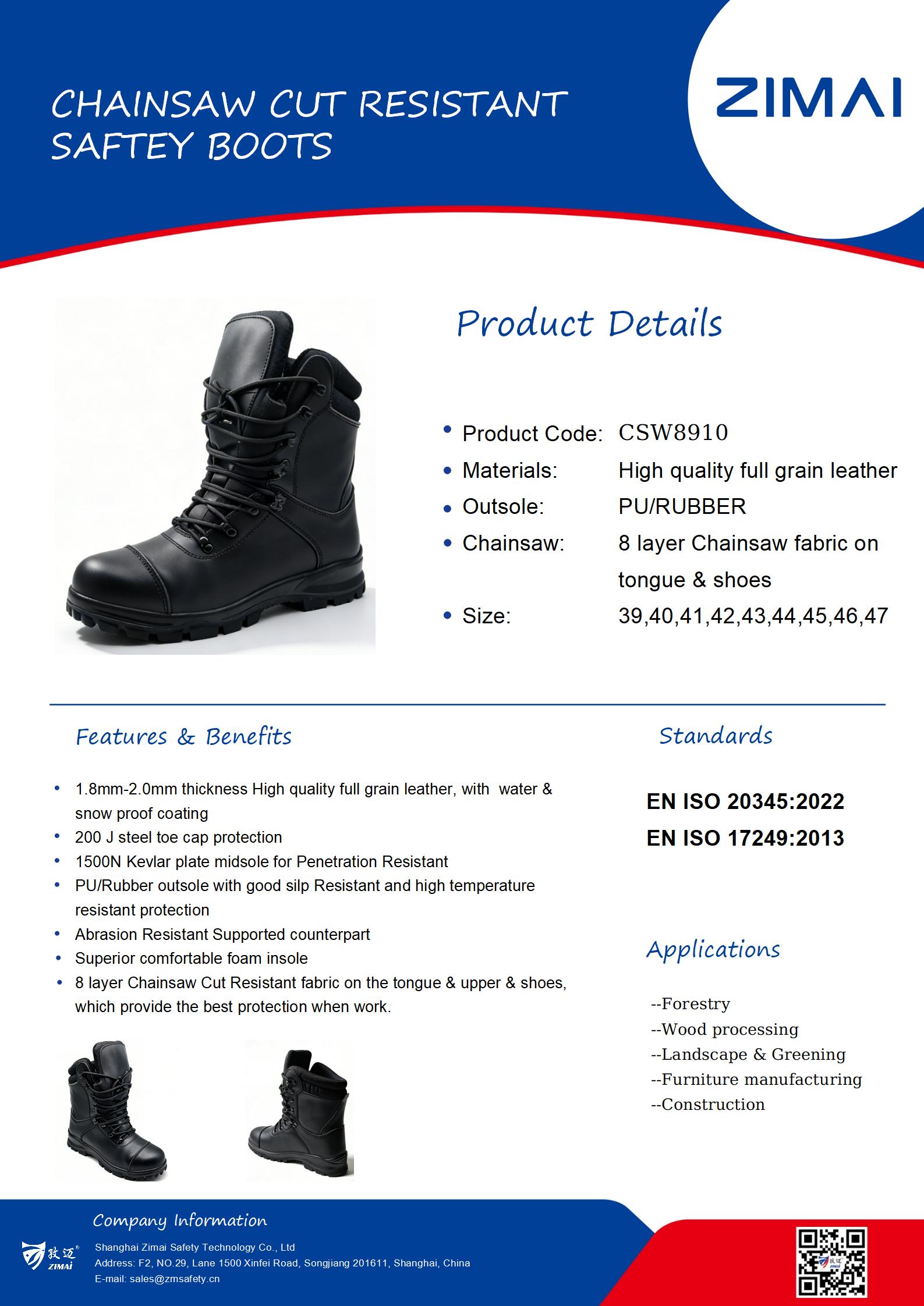 CSW8910 Защитные ботинки, устойчивые к порезам бензопилой - Shanghai Zimai Protection Technology Co., Ltd.