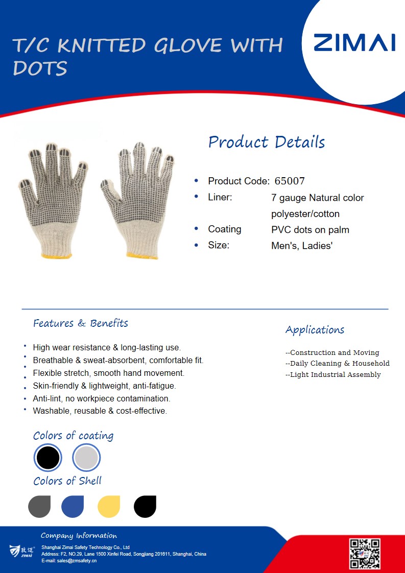 قفازات محبوكة T/C مع نقاط