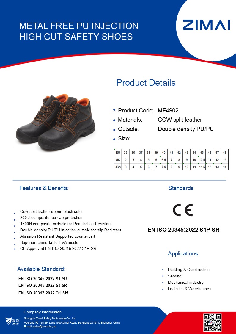أحذية أمان عالية القطع من مادة PU خالية من المعدن