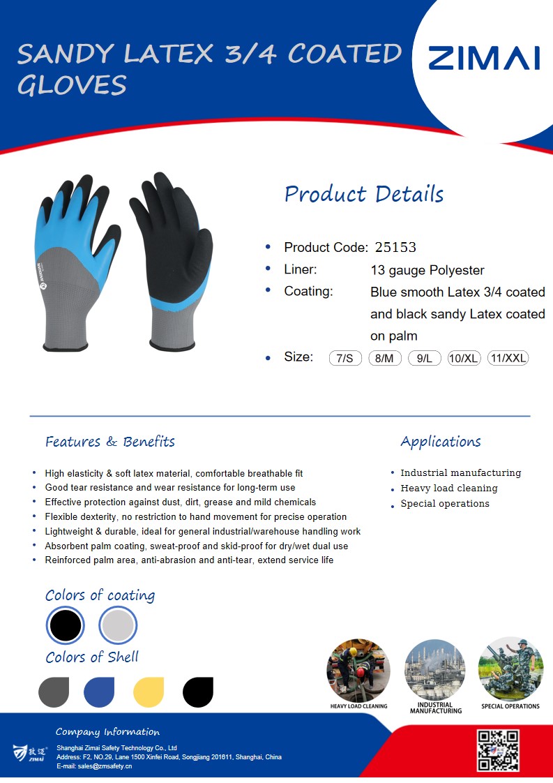 Sandiges Latex 3/4 Beschichtete Handschuhe