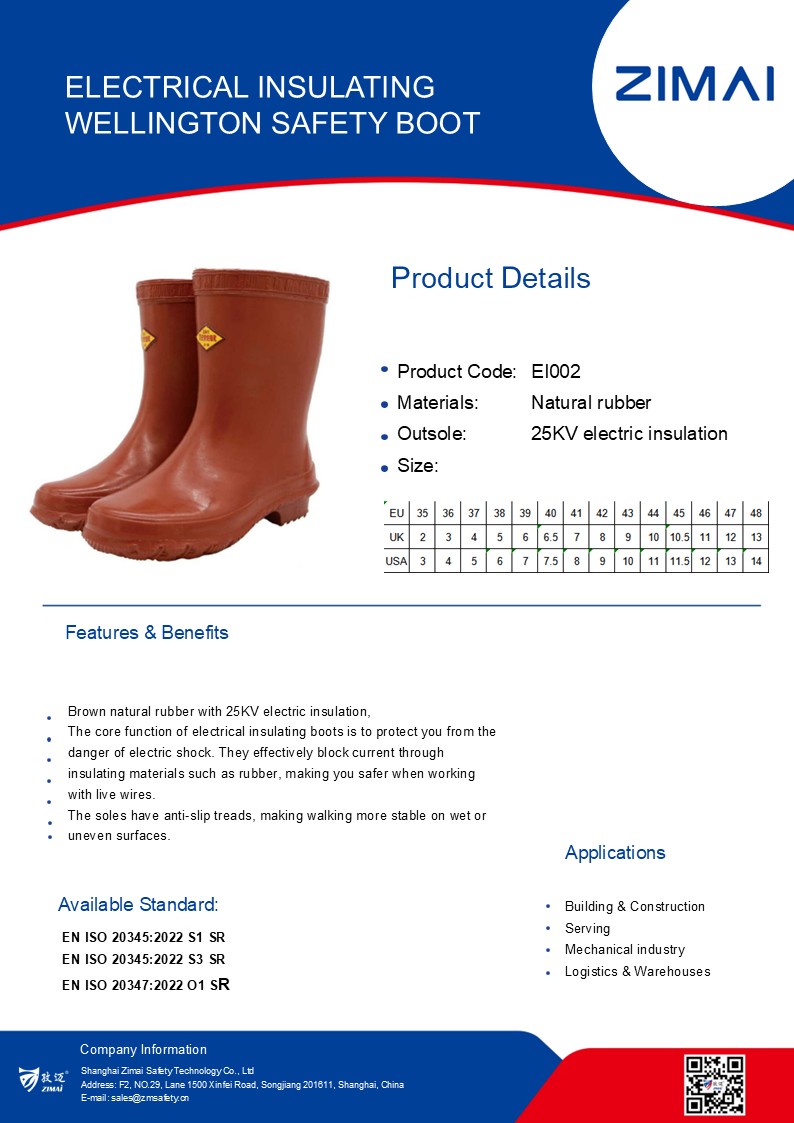 EI002 Elektrisch isolierende Gummistiefel-Sicherheitsstiefel Produkt-Nr.: EI002 Natural rubber insulation boots for live work Material: Natural rubber Electric insulation:25KV Größe: 37-46 Anfrage senden Live-Chat Produktdetails Datumsblatt Elektrisch isolierende Gummistiefel-Sicherheitsstiefel Natural rubber insulation boots for live work Material: Natural rubber Electric insulation:25KV Größe: 37-46 Schlagworte:Elektrisch isolierende SicherheitsstiefelElektrisch isolierende Gummistiefel-SicherheitsstiefelSicherheitsstiefel Aktie: FacebookTwitterLinkedInWhatsApp Vorläufig: EI001 Elektrisch isolierende Gummistiefel-Sicherheitsstiefel Nächste: EI003 Elektrisch isolierende Gummistiefel-Sicherheitsstiefel Verwandte Produkte EI005 Elektrisch isolierende Sicherheitsstiefel
