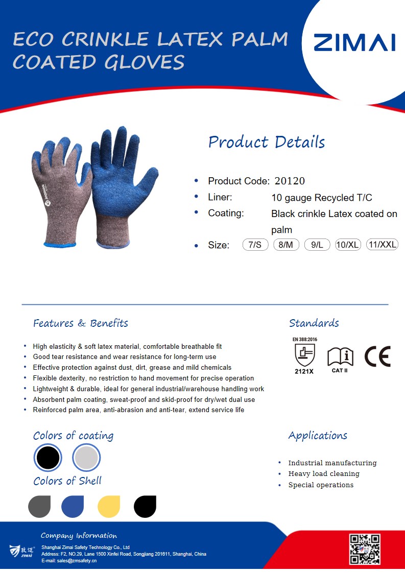 Guantes ECO con revestimiento de palma de látex arrugado