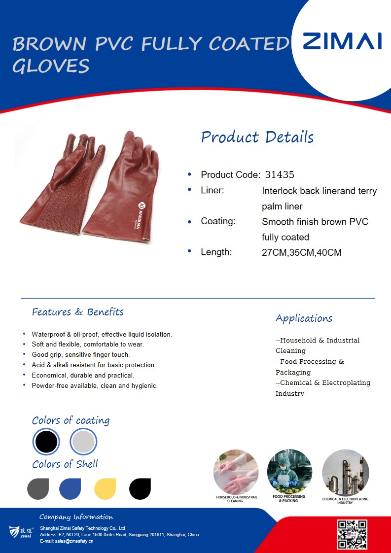 Guantes totalmente recubiertos de PVC marrón
