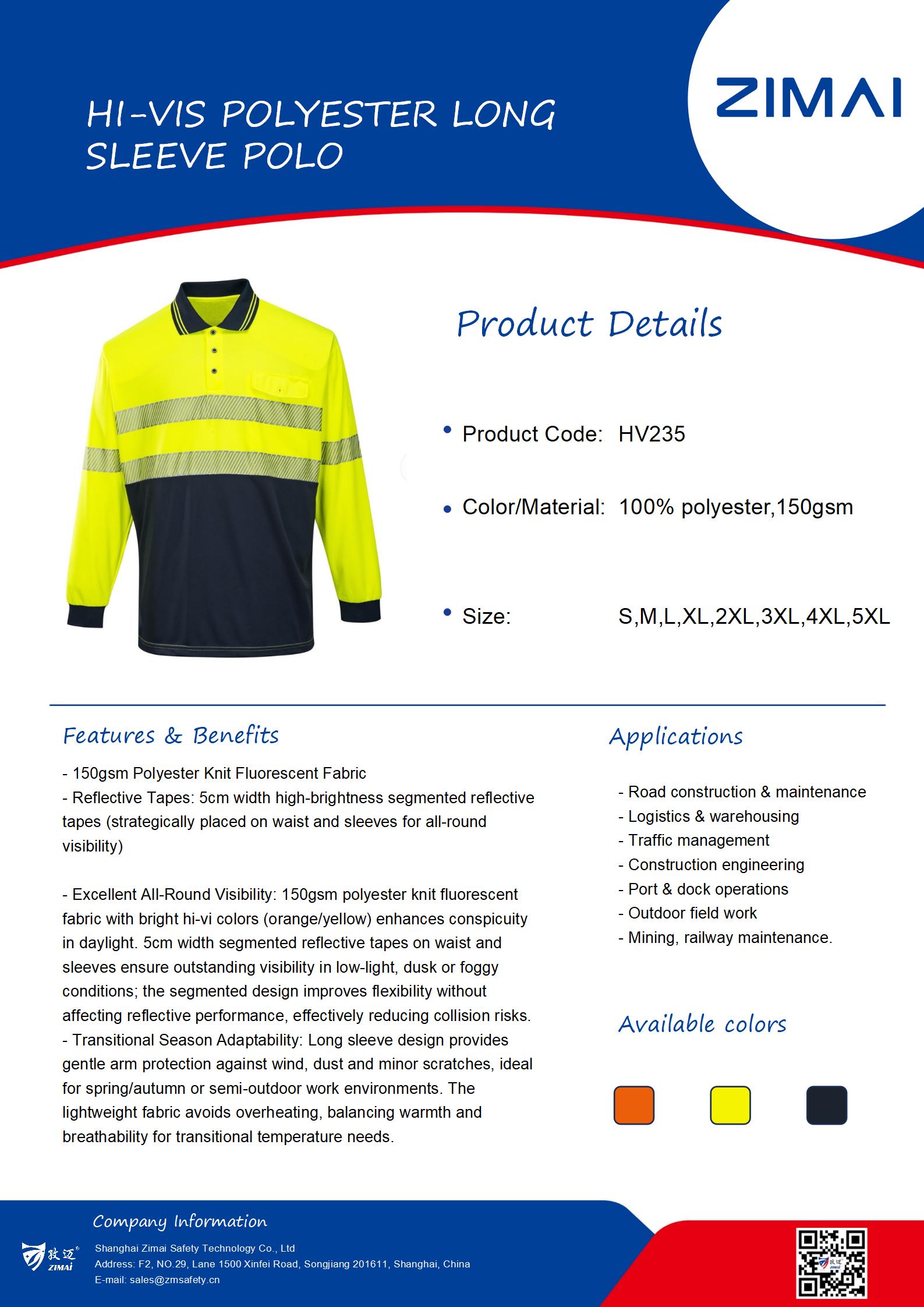 POLO de manga larga de poliéster de alta visibilidad
