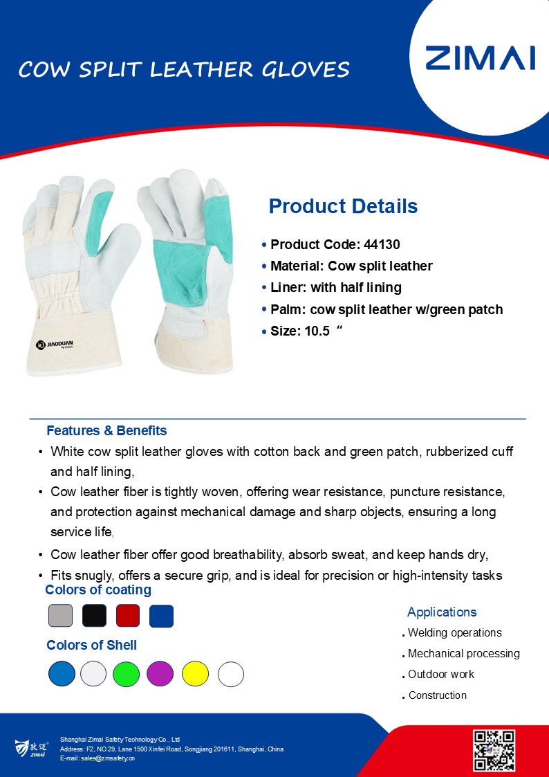 Cow split leather palm with green leather patch