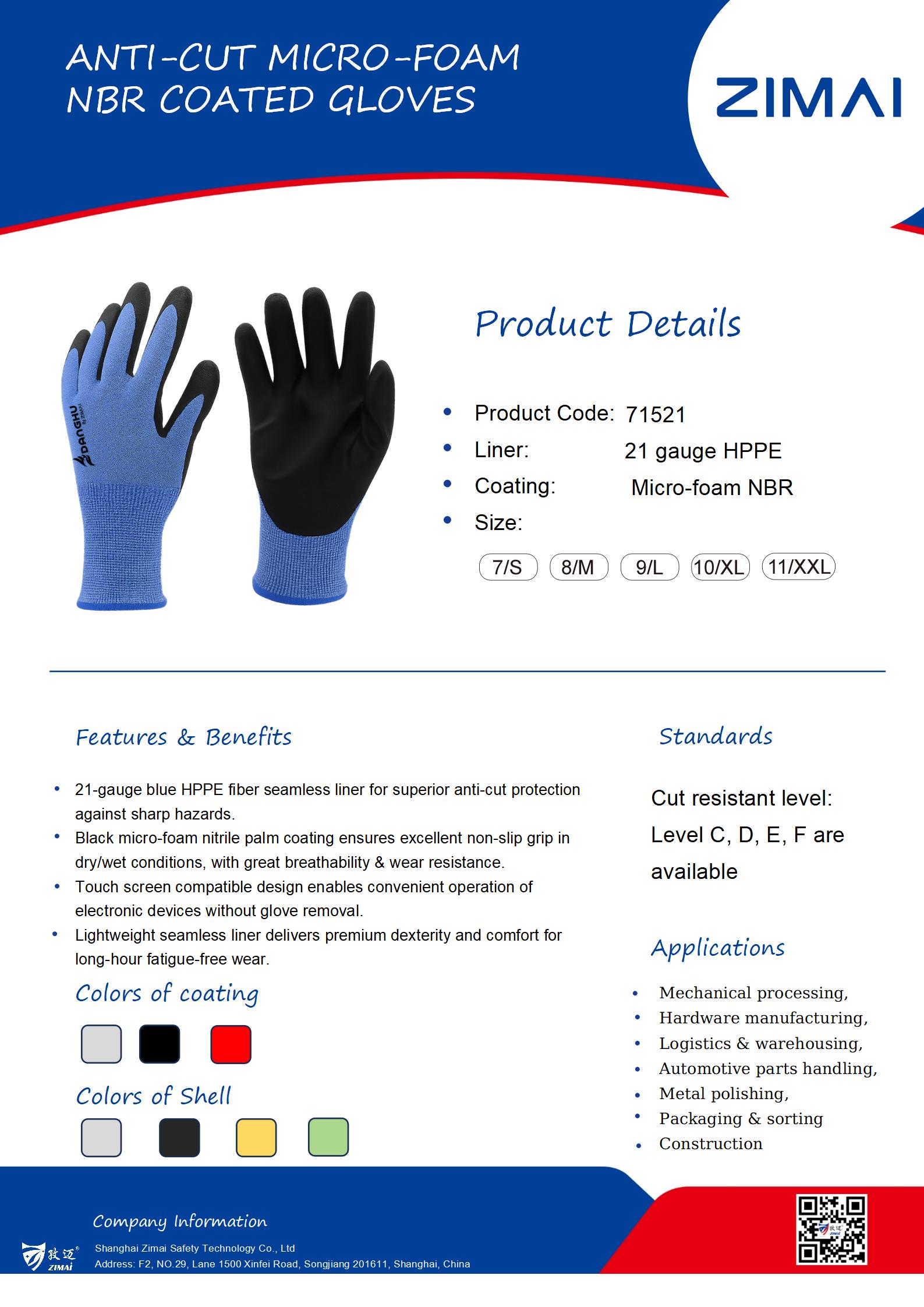 Guanti rivestiti in NBR con microschiuma antitaglio touch screen