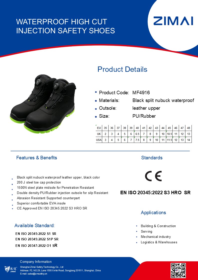 MF4916 방수 하이컷 사출 안전화 제품번호: MF4916 Black split nubuck waterproof leather upper 스틸 토 캡, 철판 미드솔, 정전기 방지 방수 전체 안감 PU/Rubber outsole 크기: 36-48 안에 20345:2022 S3S HRO SR 문의 보내기 라이브 채팅 제품 세부정보 날짜 시트 방수 하이컷 사출 안전화 Black split nubuck waterproof leather upper 스틸 토 캡, 철판 미드솔, 정전기 방지 방수 전체 안감 PU/Rubber outsole 크기: 36-48 안에 20345:2022 S3S HRO SR 태그:하이컷 안전화안전화방수 안전화 공유하다: 페이스 북지저귀다LinkedInwhatsapp 이전: PR5930 방수 하이컷 사출 안전화 다음: MF4616 방수 로우컷 주입 안전화 관련 제품 PR5960 BOA 방수 하이컷 주입 안전화