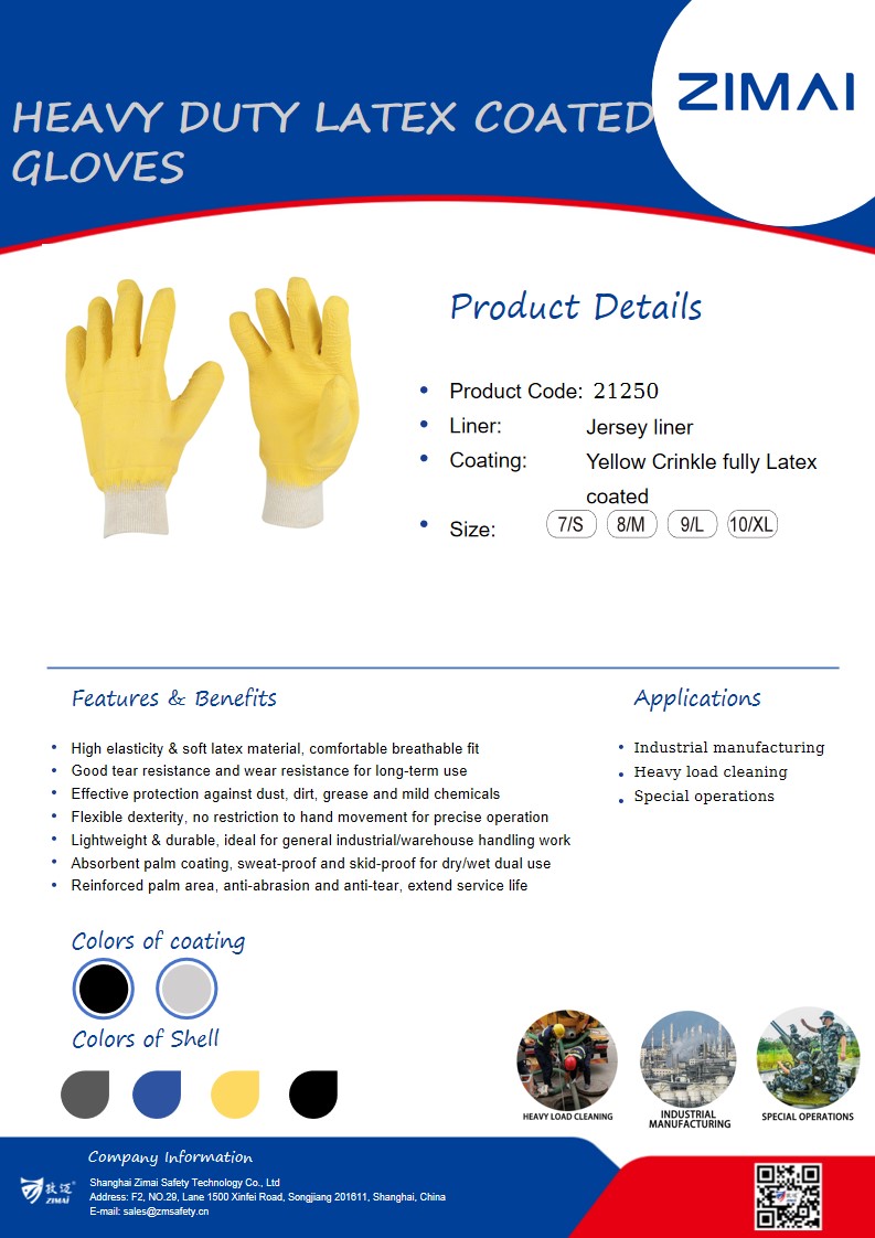 21250 Heavy Duty Latex Coated Gloves Product No.: 21250 Yellow crinkle fully Latex coated Jersey liner Knit wirst Size available: 7/S-10/XL Send Inquiry Live Chat Product Details Data Sheet Heavy Duty Latex Coated Gloves Yellow crinkle fully Latex coated Jersey liner Knit wirst Size available: 7/S-10/XL Tags:fully Latex coatedHeavy Duty Latex Coated GlovesYellow crinkle Share: FacebookTwitterLinkedInWhatsApp Prev: 21240 Heavy Duty Latex Coated Gloves Next: 21270 ECO Heavy Duty Latex Coated Gloves Related Products 21290 Latex Gauntlet Gloves