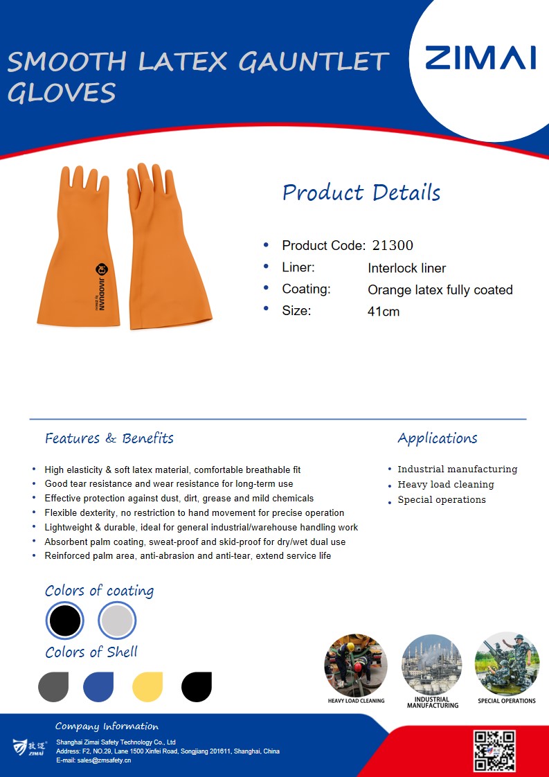 21300 Smooth Latex Gauntlet Gloves Product No.: 21300 Orange latex fully coated Interlock liner Length: 41cm Send Inquiry Live Chat Product Details Data Sheet Smooth Latex Gauntlet Gloves Orange latex fully coated Interlock liner Length: 41cm Tags:41cmOrange latex fully coatedSmooth Latex Gauntlet Gloves Share: FacebookTwitterLinkedInWhatsApp Prev: 21270 ECO Heavy Duty Latex Coated Gloves Next: 21260 ECO Heavy Duty Latex Coated Gloves Related Products 21290 Latex Gauntlet Gloves