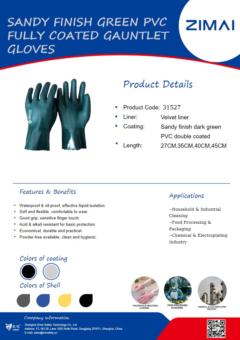 31527 Smooth Finish Green PVC Fully Coated Gauntlet Gloves Product No.: 31527 Sandy finish dark green PVC double coated velvet liner Length available:27cm,35cm,40cm,45cm Send Inquiry Live Chat Product Details Data Sheet Smooth Finish Green PVC Fully Coated Gauntlet Gloves Sandy finish dark green PVC double coated velvet liner Length available:27cm,35cm,40cm,45cm Tags:Gauntlet GlovesGreen PVCSmooth Finish Green PVC Fully Coated Gauntlet Gloves Share: FacebookTwitterLinkedInWhatsApp Prev: 31135 Smooth Finish Red PVC Fully Coated Gauntlet Gloves Next: 31170 PVC Gauntlet Winter Gloves Related Products 35000 PVC Impregnated Gloves