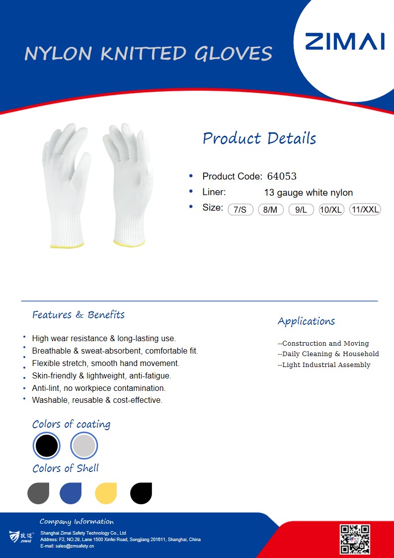 64053 Nylon Knitted Gloves Product No.: 64053 13 gauge white nylon knitted gloves Size available: 7/S-11/XXL Send Inquiry Live Chat Product Details Data Sheet Nylon Knitted Gloves 13 gauge white nylon knitted gloves Size available: 7/S-11/XXL Tags:13 gaugeNylon Knitted Gloveswhite nylon knitted gloves Share: FacebookTwitterLinkedInWhatsApp Prev: 65027 Nylon/ Cotton Knitted Gloves With Dots Next: 64063 Thermal Knitted Gloves Related Products 65053 Polyester Knitted Gloves With Mini Dots