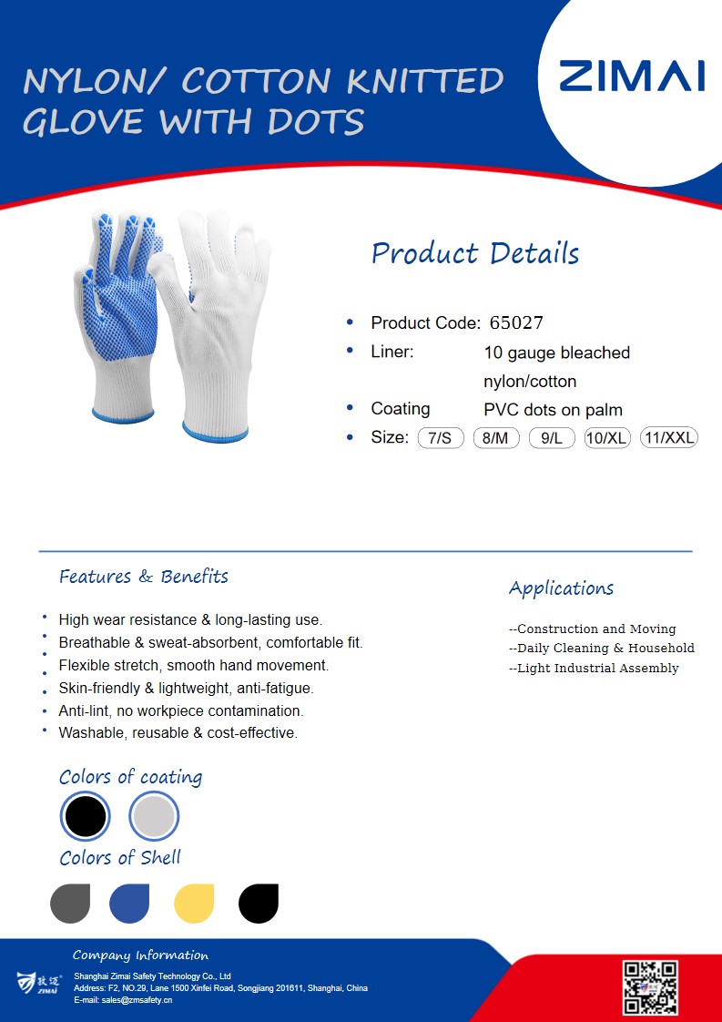 65027 Nylon/ Cotton Knitted Gloves With Dots Product No.: 65027 10 gauge bleached nylon/cotton knitted gloves PVC dots on palm Size available: 7/S-11/XXL Send Inquiry Live Chat Product Details Data Sheet Nylon/ Cotton Knitted Gloves With Dots 10 gauge bleached nylon/cotton knitted gloves PVC dots on palm Size available: 7/S-11/XXL Tags:10 gaugeNylon/ Cotton Knitted Gloves With DotsPVC Dots Share: FacebookTwitterLinkedInWhatsApp Prev: 66000 T/C Knitted Gloves With Dots Next: 64053 Nylon Knitted Gloves Related Products 65053 Polyester Knitted Gloves With Mini Dots