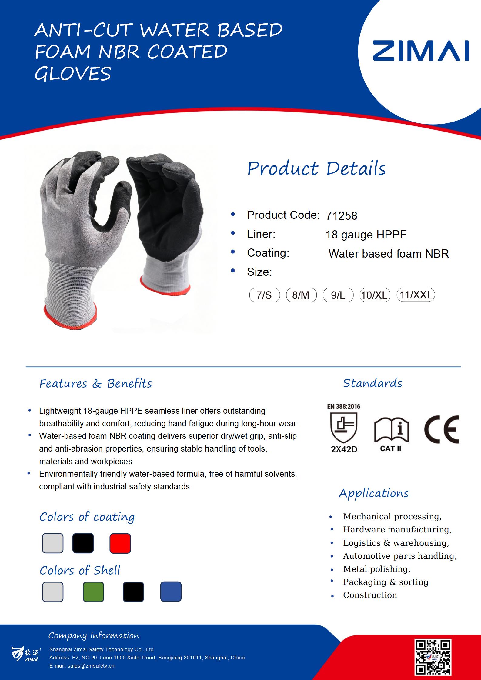 Anti-cut Water based foam NBR coated Gloves