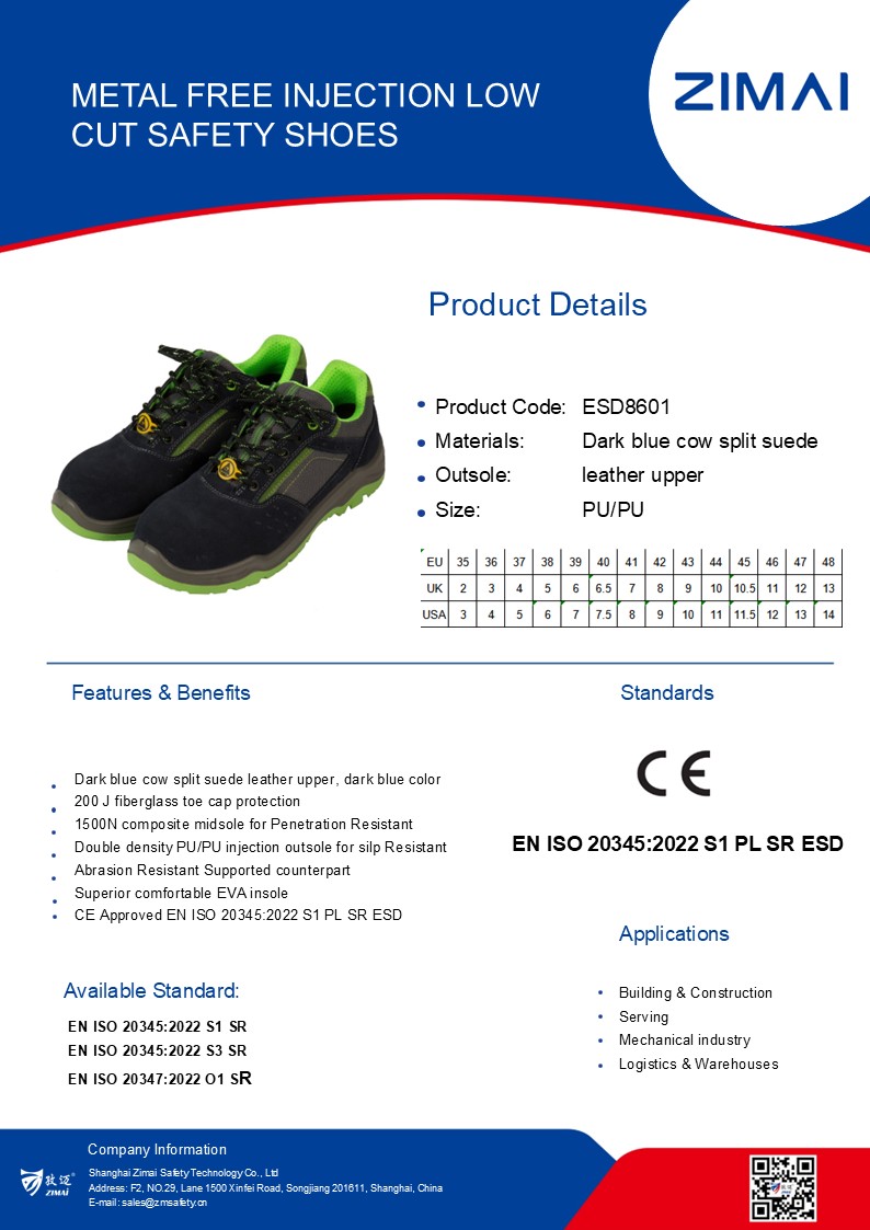 ESD8601 Metal Free Injection ESD Low Cut Safety Shoes - 上海孜迈防护科技有限公司