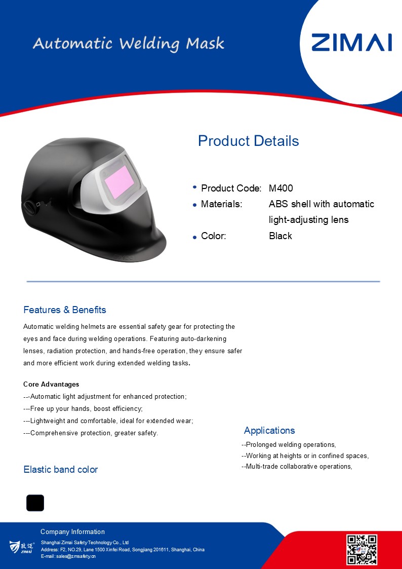M400 Automatic Welding Mask Product No.: M400 Power supply: Solar cells ABS shell Automatic light-adjusting lens with size 27*20cm Send Inquiry Live Chat Product Details Date Sheet Automatic Welding Mask Power supply: Solar cells ABS shell Automatic light-adjusting lens with size 27*20cm Tags:Automatic Welding MaskWelding Mask Share: FacebookTwitterLinkedInWhatsApp Prev: M520 Steel Mesh Face Shield Related Products M520 Steel Mesh Face Shield