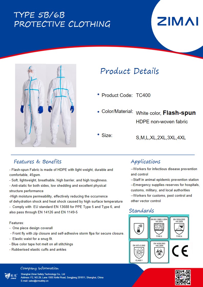 Flash spun Non-woven fabric type 5B/6B Protective clothing